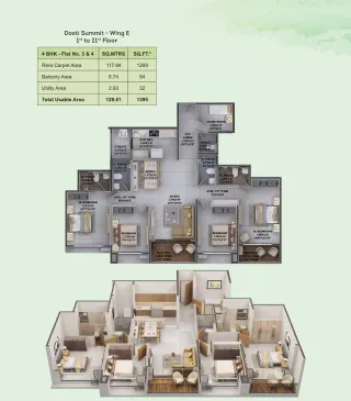 2Generous 4BHK + Servant Apartments featuring high-end finishes.